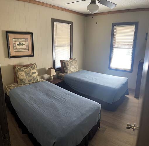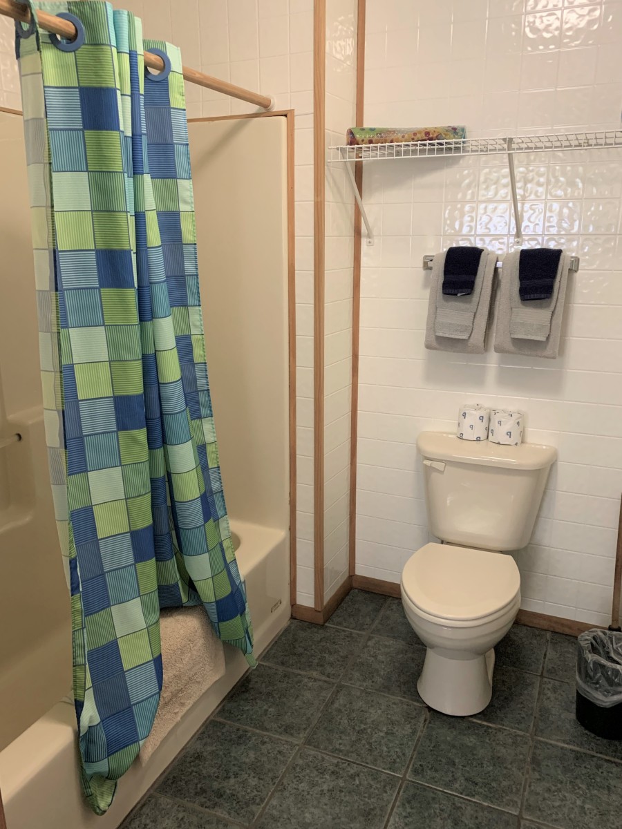 2 bed, 1 Bath (1 queen bed & 2 twins in other room)