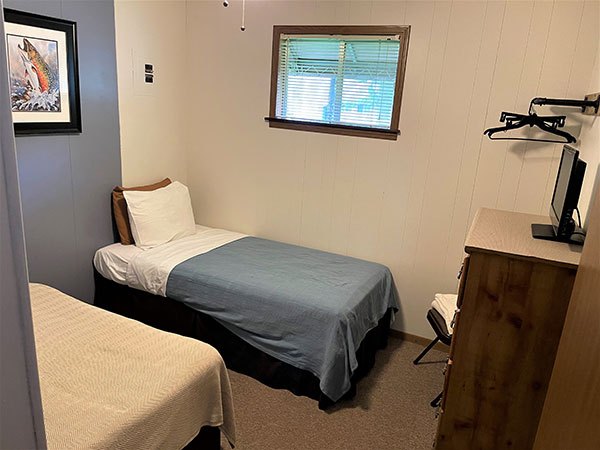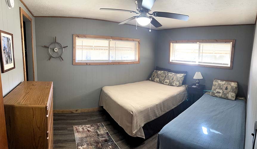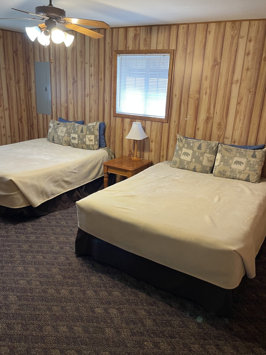 2 Bed, 1 Bath (1 bedroom is 2 full size beds, the other is 1 full and 1 twin)