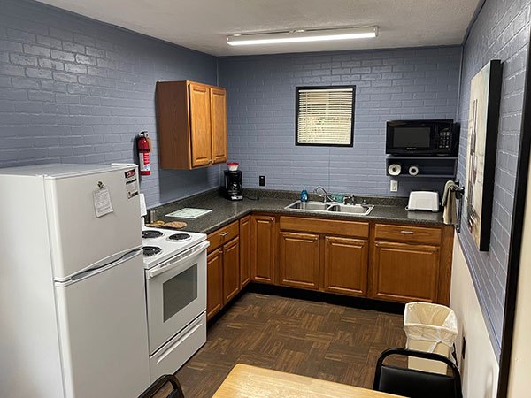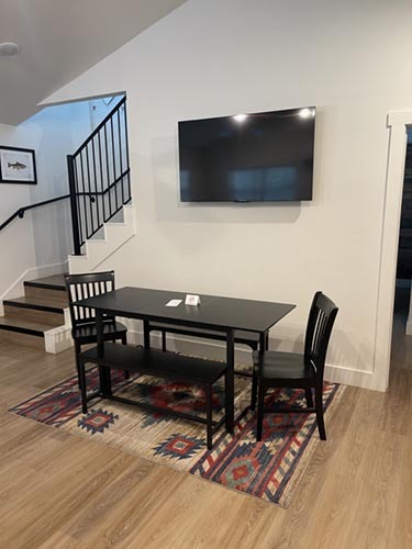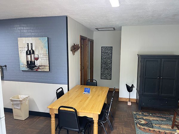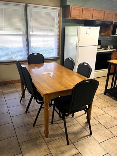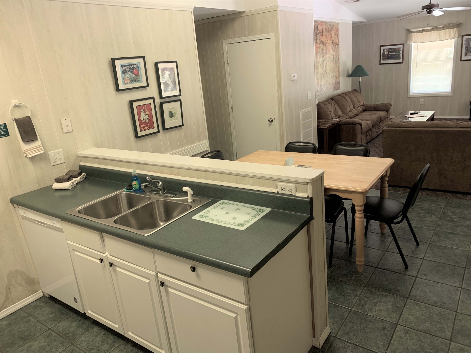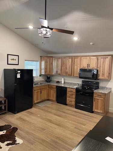 Plates, Pots/Pans, Silverware, and appliances. (When you rent both cabins you will have 2 kitchens, 2 dining tables, and two living areas.)