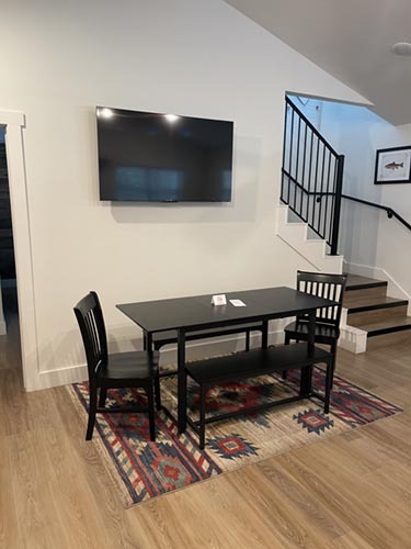 Plates, Pots/Pans, Silverware, and appliances. Enjoy having two kitchens, 2 dining tables, and 2 living room areas when you stay in this duplex.